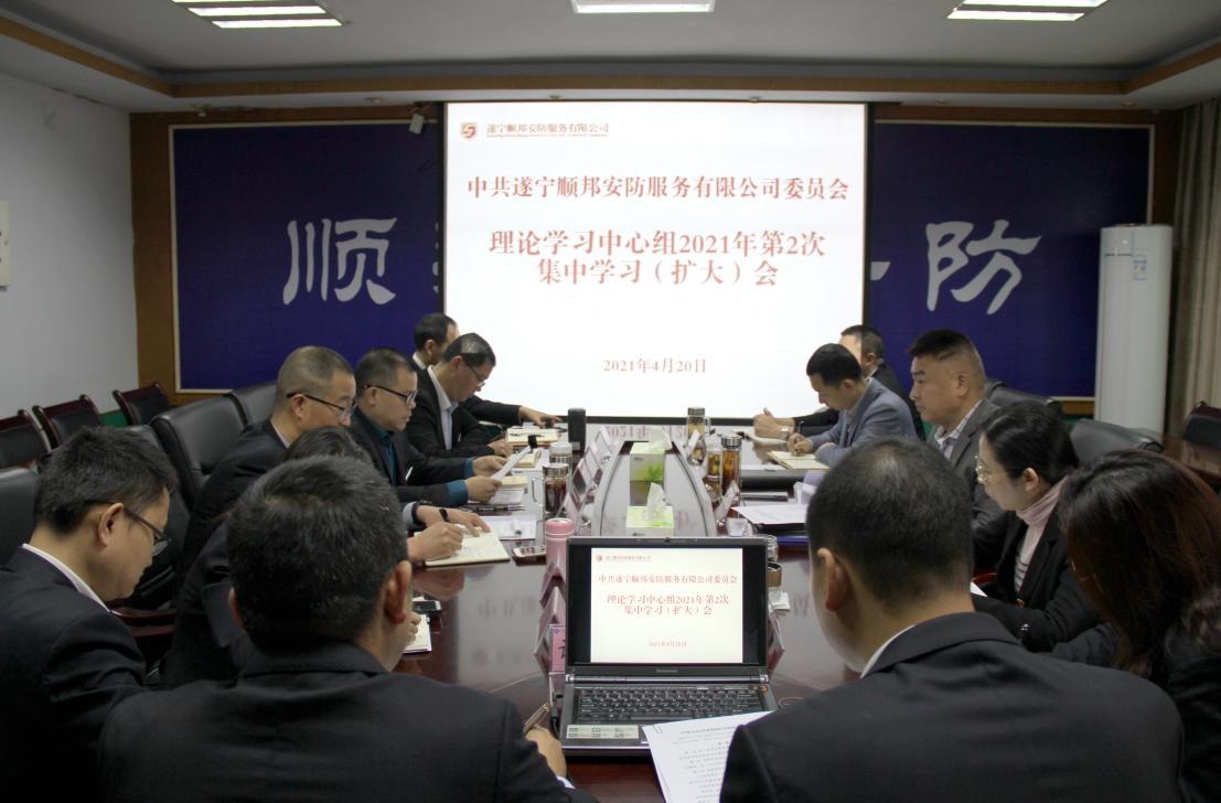 ? ? 4月20日中共遂寧順邦安防服務有限公司委員會理論學習中心組召開2021年第2次集中學習(擴大)會,會上圍繞“黨史學習教育、維護國家安全”主題,組織學習習近平《論中國共產黨歷史》、《中華人民共和國保守國家秘密法》。黨委書記、執(zhí)行董事、總經理唐清華主持會議。