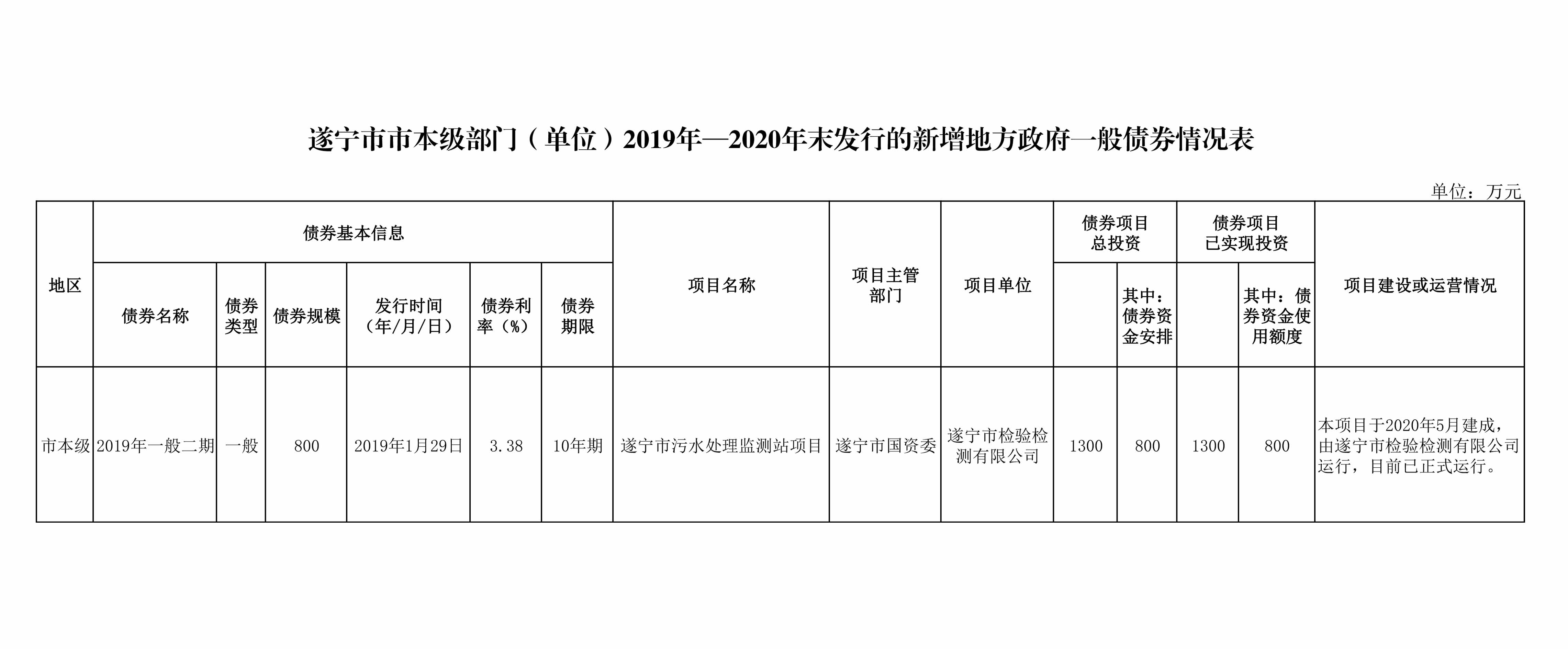 遂寧市市本級(jí)部門(單位)2019年—2020年末發(fā)行的新增地方政府一般債券情況表